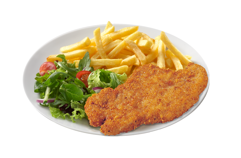 Frietje met hete kip was heerlijk. Mijn dochter had een lekkere bami met ei.